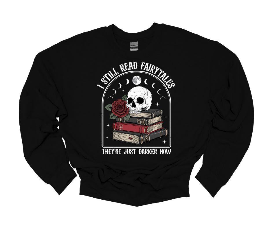 Cozy up in the "Still Read Fairytales" sweatshirt—a fun and playful way to show your love for magical stories. Soft and comfortable, it’s perfect for relaxing days spent dreaming of enchanted worlds or curling up with your favorite book.